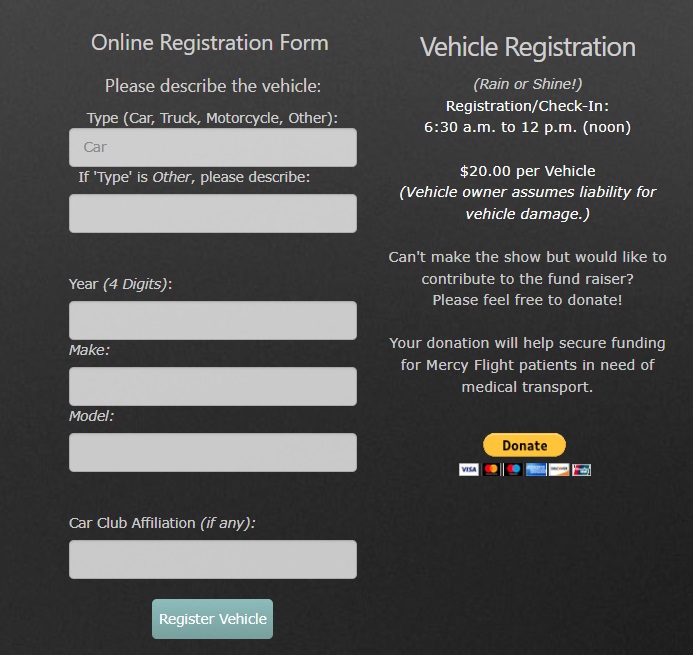Last year we were able to donate $37,000 to Mercy Flight of WNY thanks to support from our sponsors, vendors, show vehicles and spectators. We could not put on our show without the generous support we receive from the community.